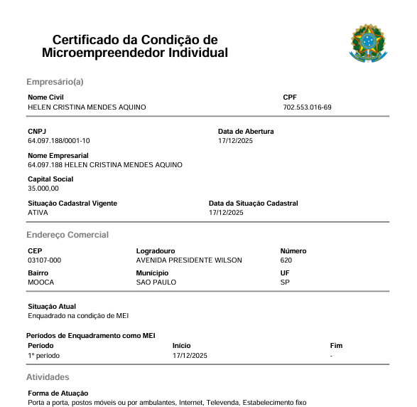 Atuação: São Paulo/SP e envios para todo o Brasil